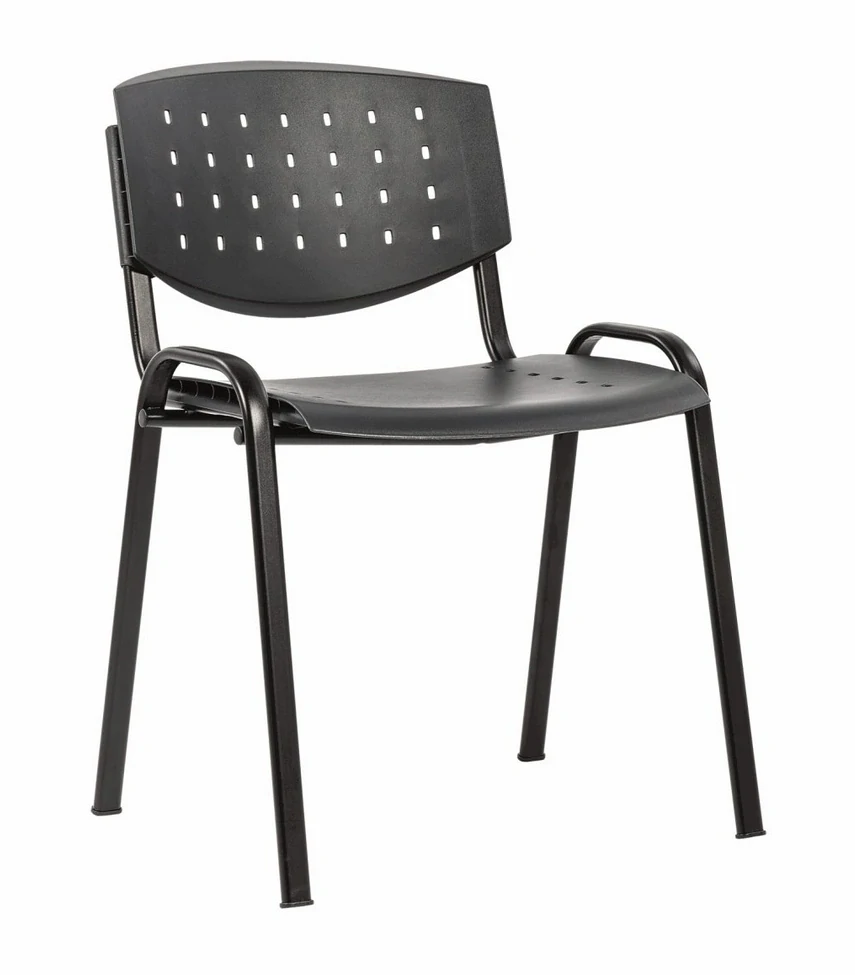 Perforované operadlo podporuje cirkuláciu vzduchu a zvyšuje komfort sedenia, zatiaľ čo ergonomicky tvarovaný sedák poskytuje pohodlie aj pri dlhšom používaní. Stolička je stohovateľná, čím šetrí priestor pri skladovaní a manipulácii. Vďaka tvrdým a hladkým povrchom je údržba jednoduchá, rýchla a bezproblémová.