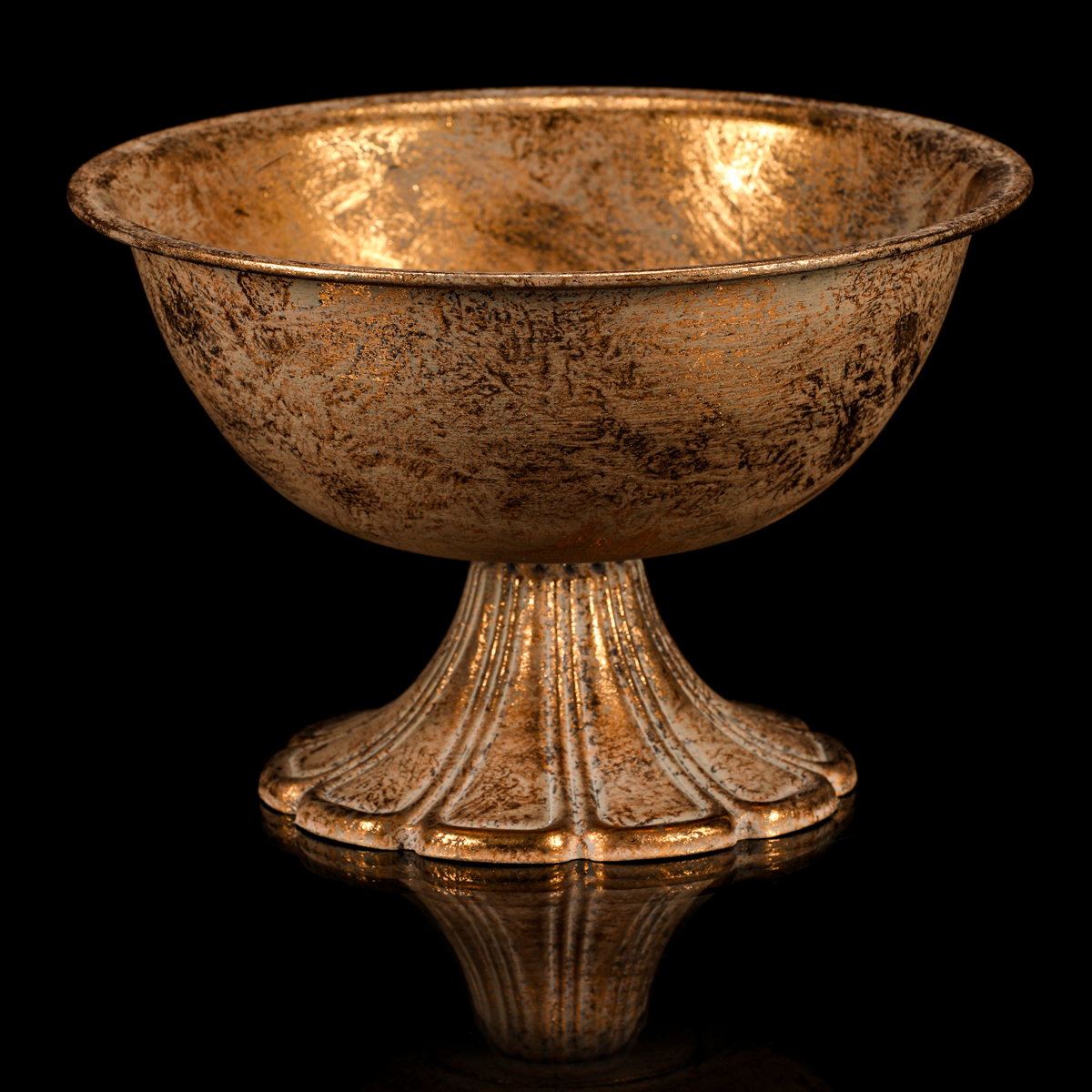Prepožičajte svojmu domovu nádych starožitného šarmu a elegancie s touto prekrásnou dekoratívnou misou na podstavci. Jej unikátna patina v zlatej farbe dodáva miske autentický vintage vzhľad, ktorý zaujme na prvý pohľad.